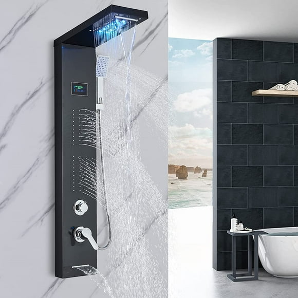 Casainc Thermostatic Round Shower Faucet Matte Black Dual Head Waterfall Shower Bar System With 2 Way Diverter In The Shower Systems Department At Lowes Com